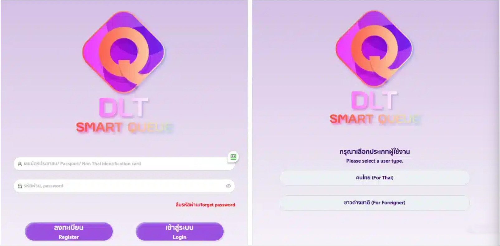 1. เปิดแอปพลิเคชัน DLT Smart Queue > กด ลงทะเบียน กรอกรายละเอียดให้ครบถ้วน